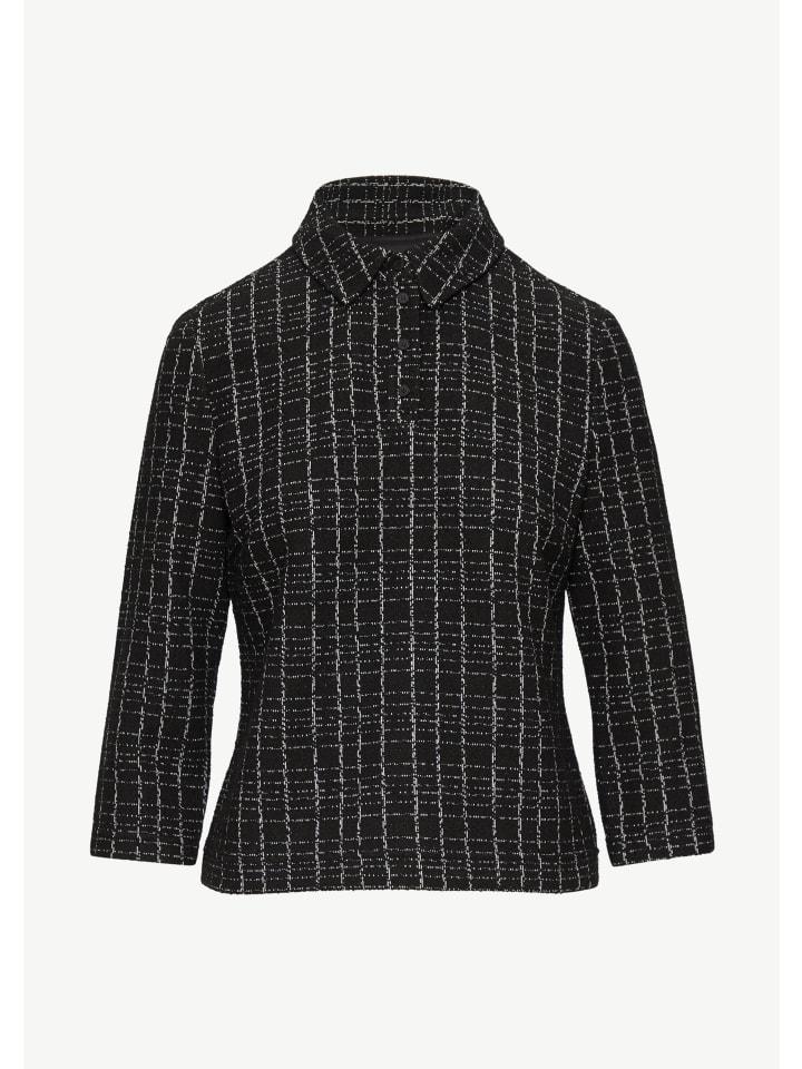 Клетчатая рубашка-поло с рукавами 3/4: ваш стильный повседневный образ. Трикотаж букле придает этой футболке прямого кроя изысканную текстуру. Классический воротник-поло и планка с пуговицами добавляют элегантности. Сочетайте ее с брюками чинос для создания элегантного офисного образа или с джинсами для непринужденного уик-энда. Универсальная вещь, сочетающая комфорт и изысканность.