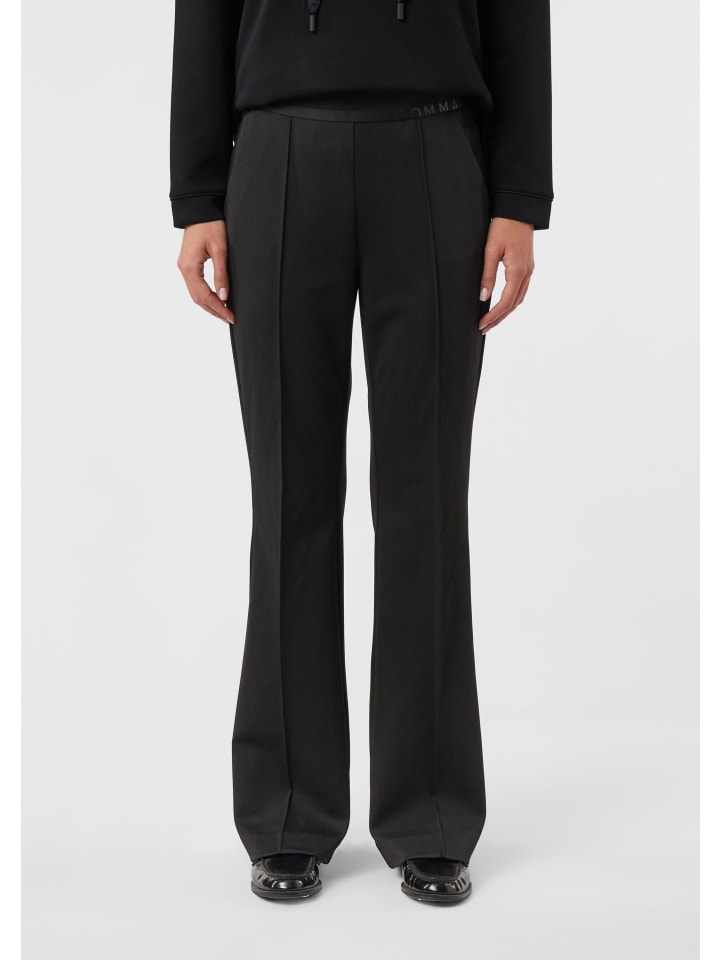 Эти брюки из джерси сочетают в себе непринужденный комфорт и стильную элегантность. Изысканный рисунок «елочка» придает мягкому трикотажу изысканность, а легкие складки создают женственный силуэт. Расклешенный крой брюк, стандартная посадка и средняя посадка на талии идеально подходят для вашей фигуры. Благодаря практичному эластичному поясу вы будете чувствовать себя комфортно в течение всего дня. Функциональные боковые карманы дополняют дизайн. Будь то деловые поездки, праздничные мероприятия или отпуск - эти универсальные брюки можно легко надеть как повседневно, так и повседневно, и они станут незаменимым предметом гардероба.