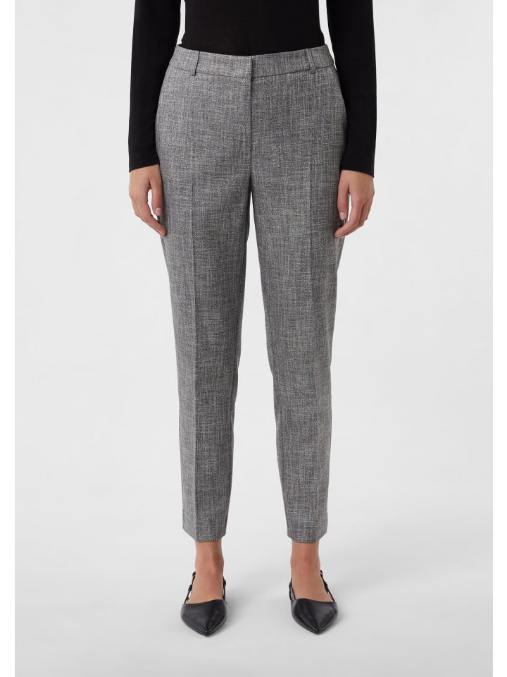 Элегантный деловой шик: эти меланжевые брюки-сигареты с рисунком в клетку «глен-клет» добавят женственности вашему образу. Средняя посадка и облегающий крой подчеркнут вашу фигуру, а длина до щиколотки добавит современный штрих. Высококачественные эластичные материалы обеспечат комфорт в повседневной офисной жизни. Сочетайте брюки с блузкой и туфлями-лодочками для создания делового образа.