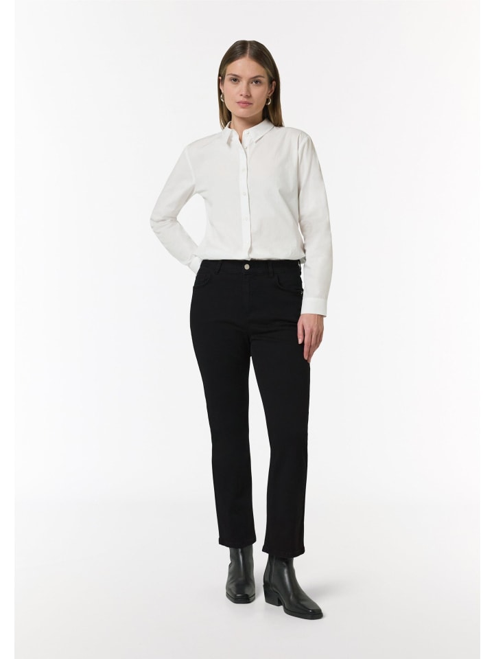 Повседневный ретро-шик и современный комфорт: эти расклешенные джинсы из хлопкового эластичного материала подчеркивают фигуру и добавляют женственности вашему образу. Расклешенный крой визуально удлиняет ноги, а эластичная ткань обеспечивает оптимальную свободу движений. Сочетайте эти универсальные джинсы с укороченными топами для создания модного образа 70-х или с блузкой для создания элегантного делового повседневного образа.