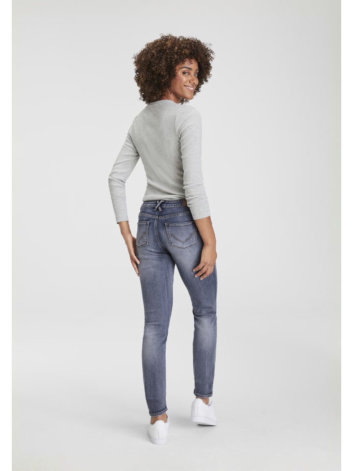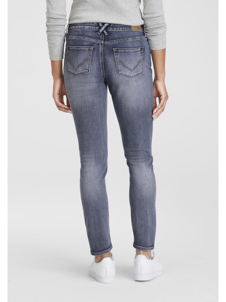 Удобные женские джинсы с пятью карманами от HIS с эффектным потертостями. Узкие брюки и классическая посадка. Множество вариантов для создания стиля, от повседневного до шикарного. Благодаря прочному дениму эти джинсы очень просты в уходе и долговечны.