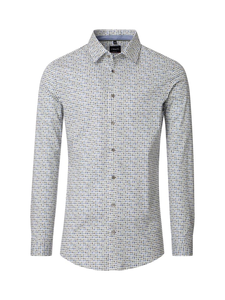 Эта деловая рубашка очень облегающего кроя обеспечивает максимальный комфорт благодаря хлопковой смеси с добавлением эластичных волокон. Стильный дизайн с модным принтом станет идеальным дополнением для мужчины, который следит за модой. Эта рубашка всегда будет удачным выбором, будь то классический крой с классическими брюками или сочетание с брюками чинос в тон.