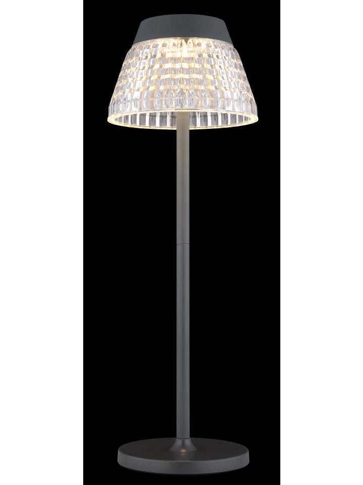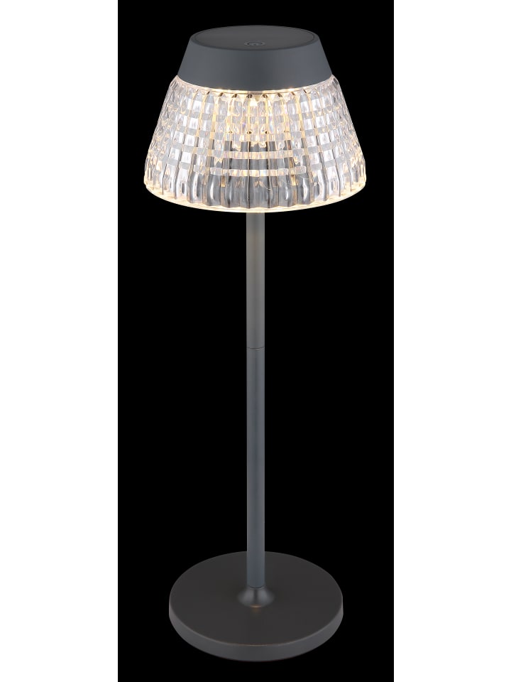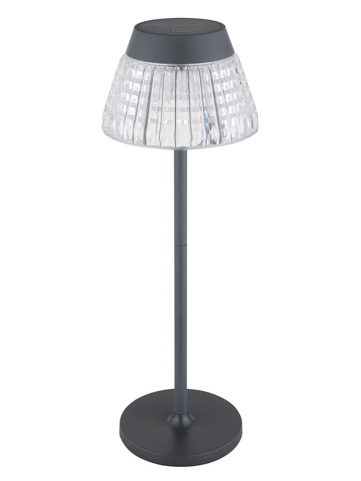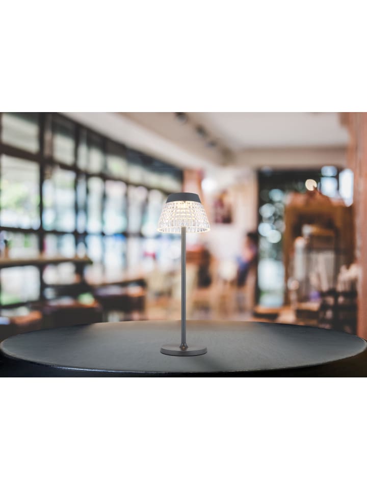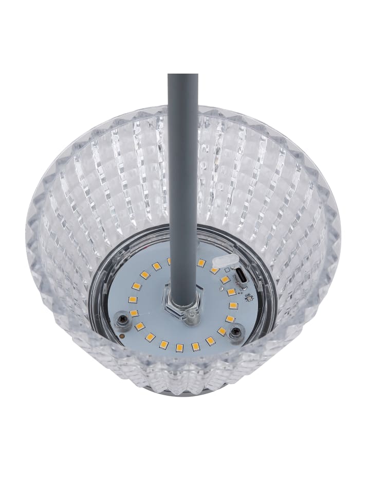 Настольная лампа, металл, матовый антрацит; прозрачные акриловые кристаллы; матовый антрацитовый пластик; белый кабель из ПВХ; сенсорное включение/выключение; плавная сенсорная регулировка яркости; USB-A 2.0 - USB-C; в комплекте аккумулятор CR18650 1200 мАч 3,7 В; время зарядки около 4 часов; время работы около 6 часов; диаметр: 135 мм; высота: 380 мм; длина кабеля: 1000 мм; возможны два варианта высоты: 21,5 см или 38 см; в комплекте светодиод 1 Вт 230 В, источник света 100 лм, световой поток 80 лм, цветовая температура 3000 К