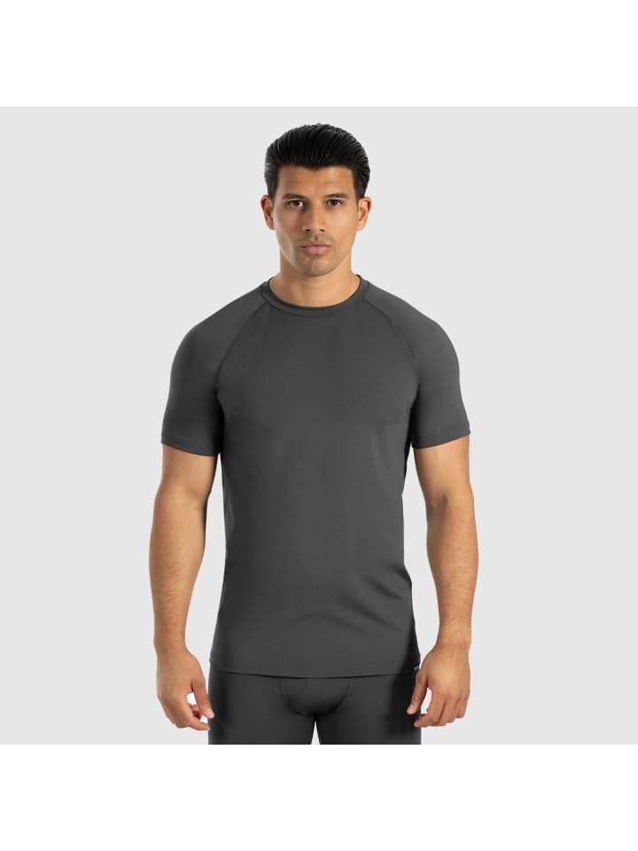 Наша мужская футболка впечатляет комфортом и спортивным кроем. Эластичный материал обеспечивает свободу движений во время любой активности. Рукава реглан и классический круглый вырез горловины создают современный и функциональный образ. Эта футболка идеально подходит как для тренировок, так и для повседневной жизни.