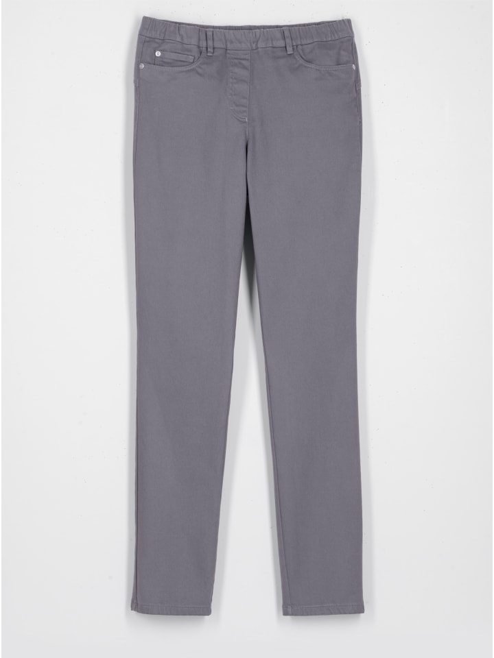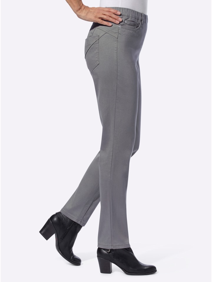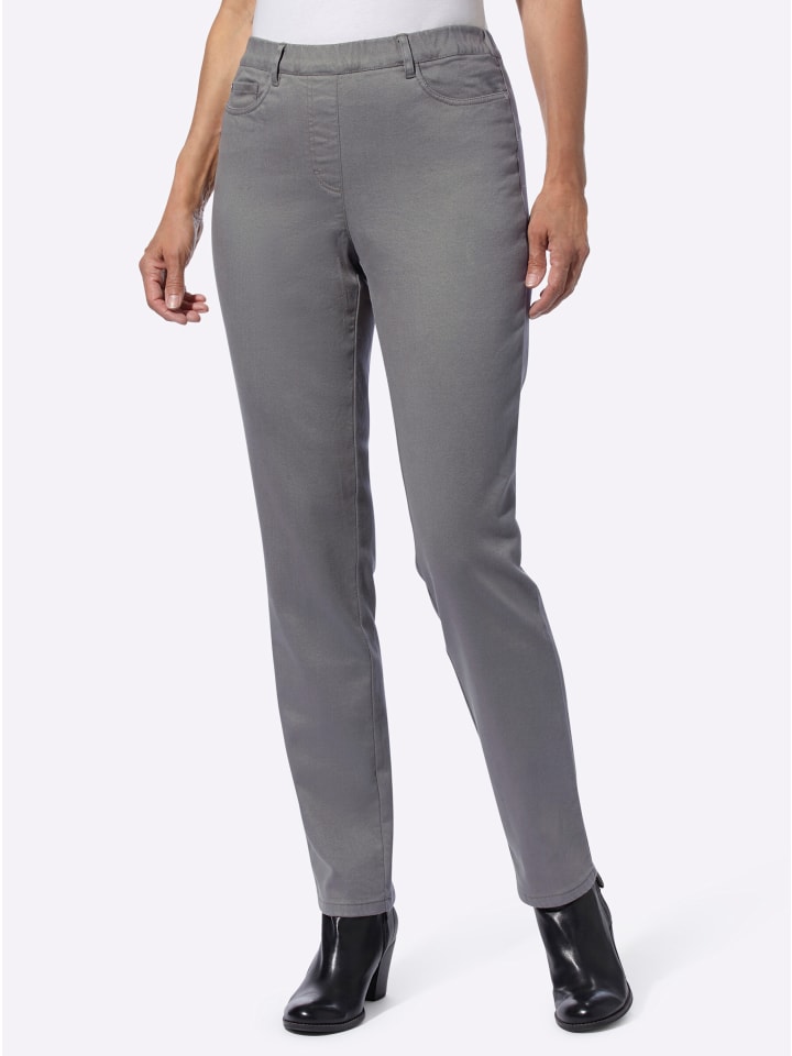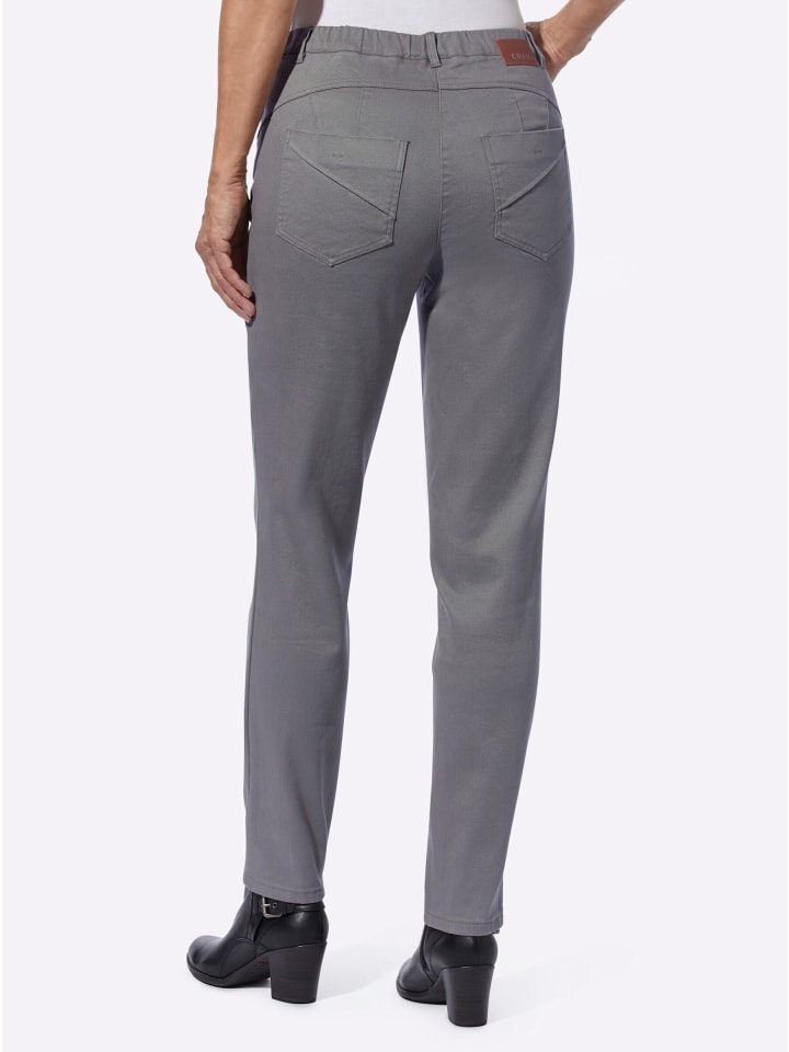 Универсальные, модные и удобные - эти джинсы из мягкой саржи с популярным кроем «5 карманов» - настоящая находка! Практичный дизайн с внутренней резинкой на поясе, шлевками для ремня, нашивкой из искусственной кожи сзади и имитацией молнии. Кокетка и продуманно расположенные вытачки сзади создают эффект пуш-ап, визуально приподнимая ягодицы. Длина брючины примерно 36 см. Ремень в комплект не входит.