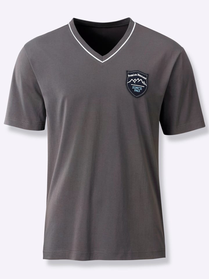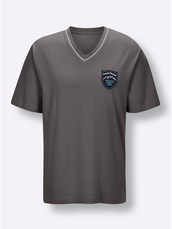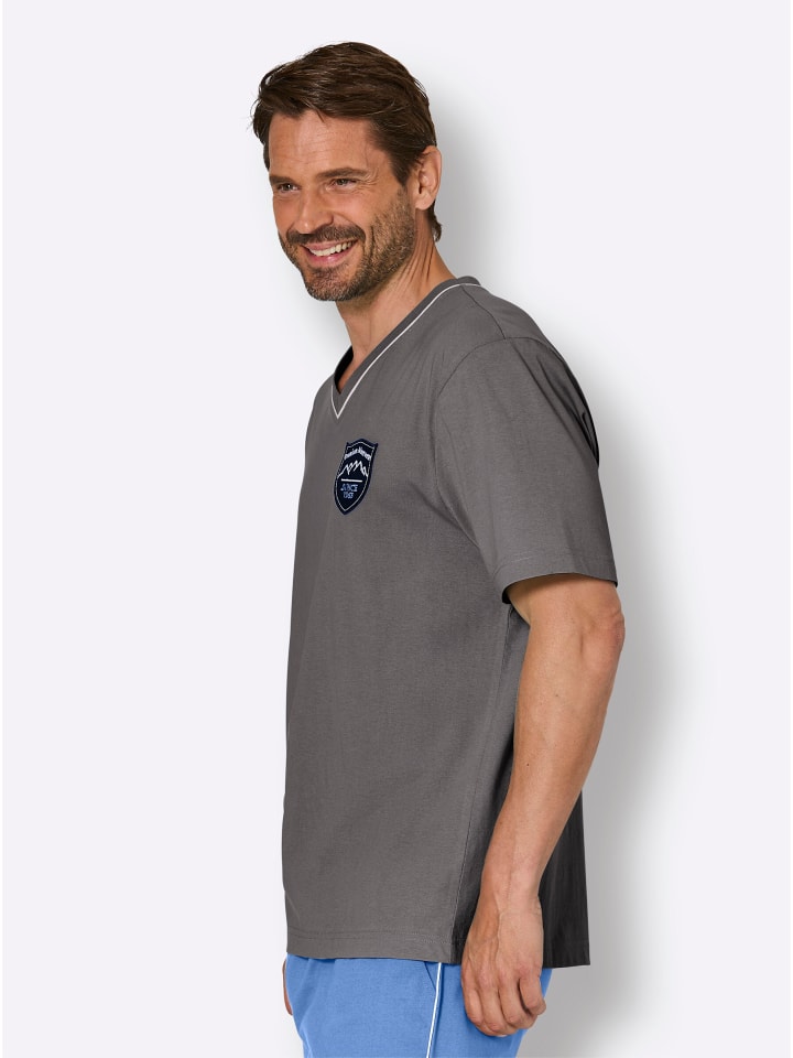 Воздушный одинарный трикотаж: Пижамная рубашка от Wäschepur из чистого хлопка. С короткими рукавами, V-образным вырезом, контрастной окантовкой и декоративной нашивкой с гербом на уровне груди. Сертифицировано GOTS.