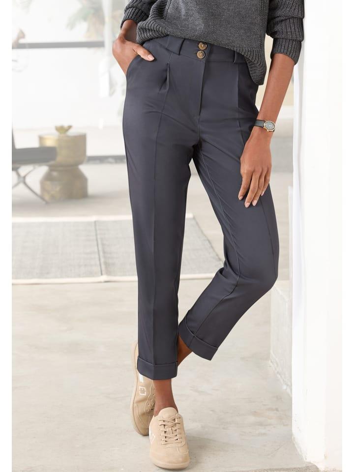 Элегантные брюки 7/8 от Lascana. Складки спереди и постоянные складки. С боковыми карманами. Две пуговицы с роговым эффектом и гульфик на молнии. Широкий пояс со шлевками для ремня. Отлично сочетается с блузками и топами более высокого качества. Воздушная вискозная смесь.