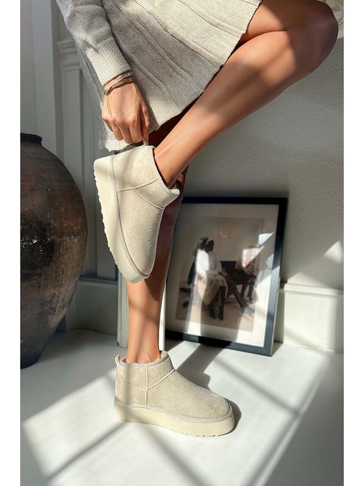 Кожаные ботильоны бежевого цвета trendyol