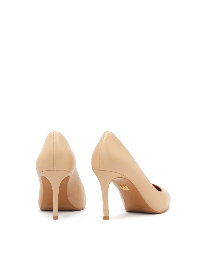 Женские туфли-лодочки из зернистой гладкой кожи имеют элегантный крой, который прекрасно смотрится на ноге. Высокий каблук-шпилька с острым носком визуально стройнит и удлиняет ноги. Каждая женщина оценит высокое качество, классическую элегантность и безупречное мастерство. Светло-коричневый цвет делает эти туфли идеальной нейтральной основой для любого образа.
