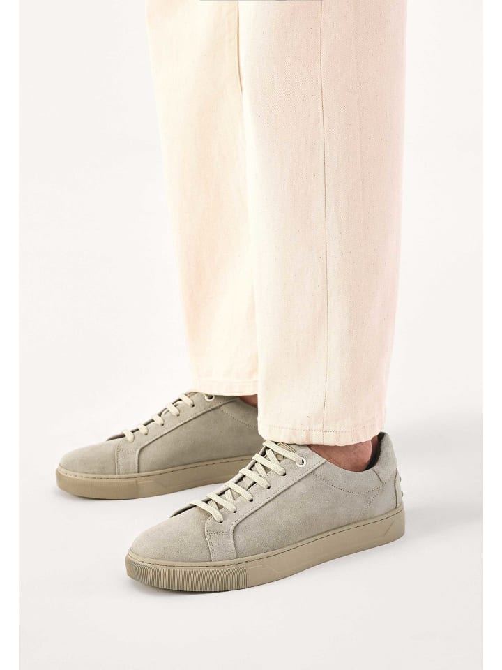 Эти мужские кроссовки из бежевой замши отличаются современным минималистичным дизайном и идеально подходят для повседневных образов. Шнуровка обеспечивает удобную посадку и высокий комфорт. Простая однотонная подошва подчеркивает сдержанный, но элегантный вид обуви. Практичные резиновые накладки на пятке обеспечивают защиту и повышают прочность, особенно при вождении. Дизайн сочетает в себе стиль и функциональность, что делает их идеальным выбором для повседневной носки.