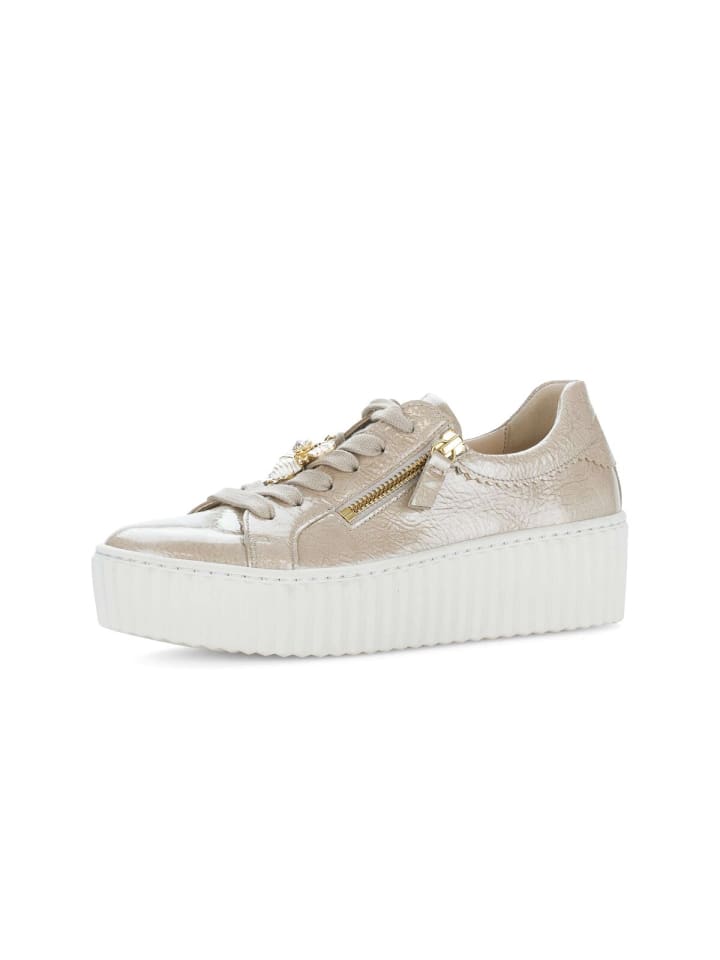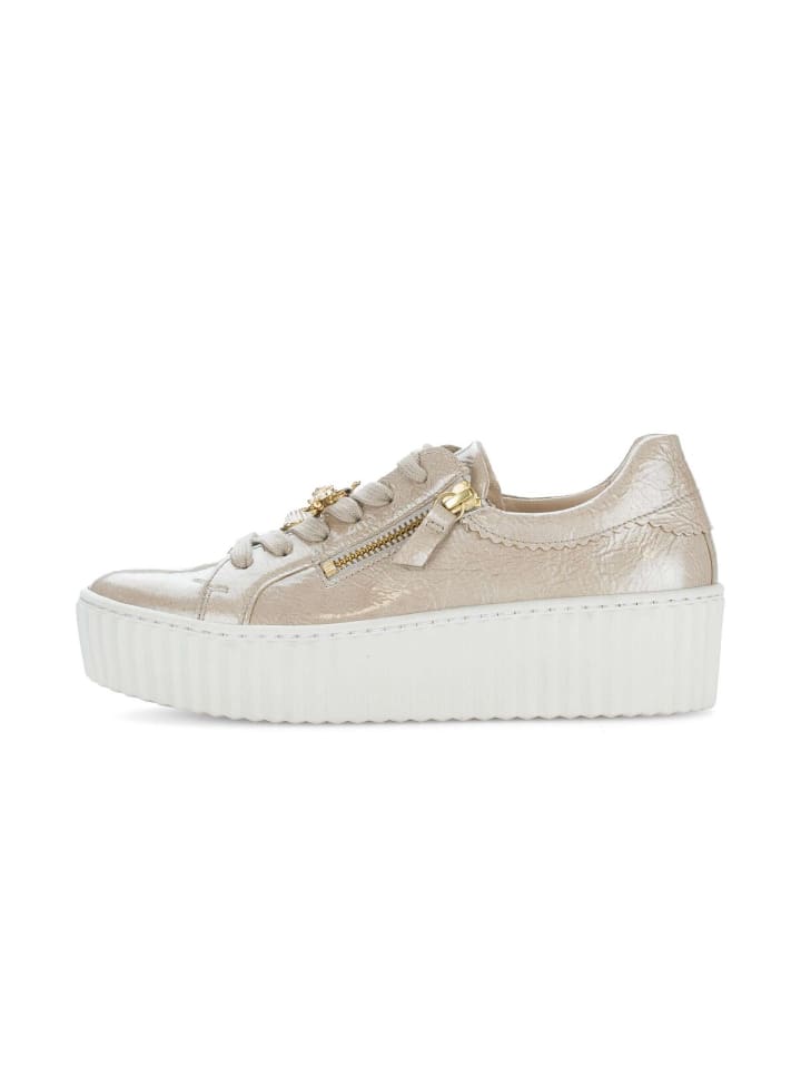 Низкие кроссовки Gabor бежевого цвета - идеальный выбор для стильных женщин. Верх выполнен из эффектной лакированной кожи, что придает кроссовкам неповторимый вид. Полнота F (нормальная) означает, что эти кроссовки идеально подойдут женщинам с узкой или средней стопой. Эта модель оснащена съемной стелькой из переработанного материала, что не только повышает комфорт, но и соответствует принципам экологичности. Благодаря оптимальной посадке, обладательница получает более широкую площадь контакта с поверхностью в области подушечки стопы и повышенный комфорт. Модель поставляется со съемной стелькой, которую можно легко заменить на ортопедическую.