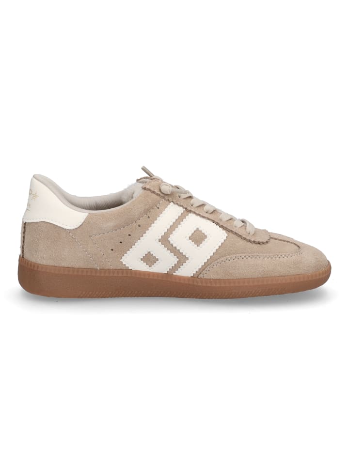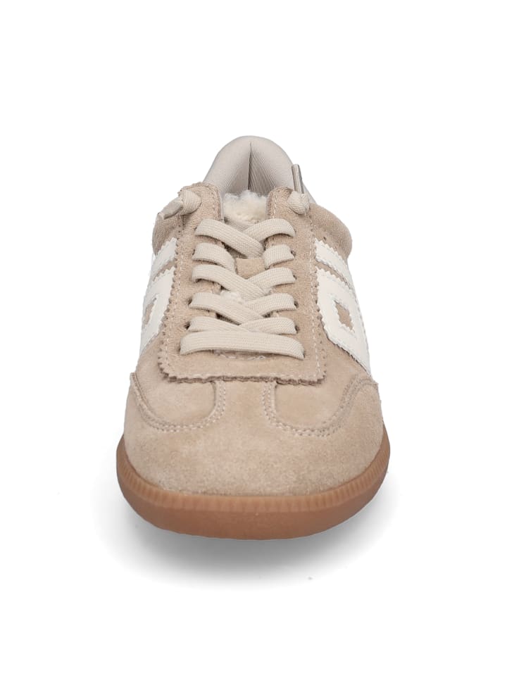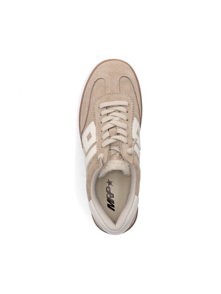 Женские кроссовки Maripé из бежевой замши с эластичными шнурками, съемной текстильной стелькой и мягким каблуком