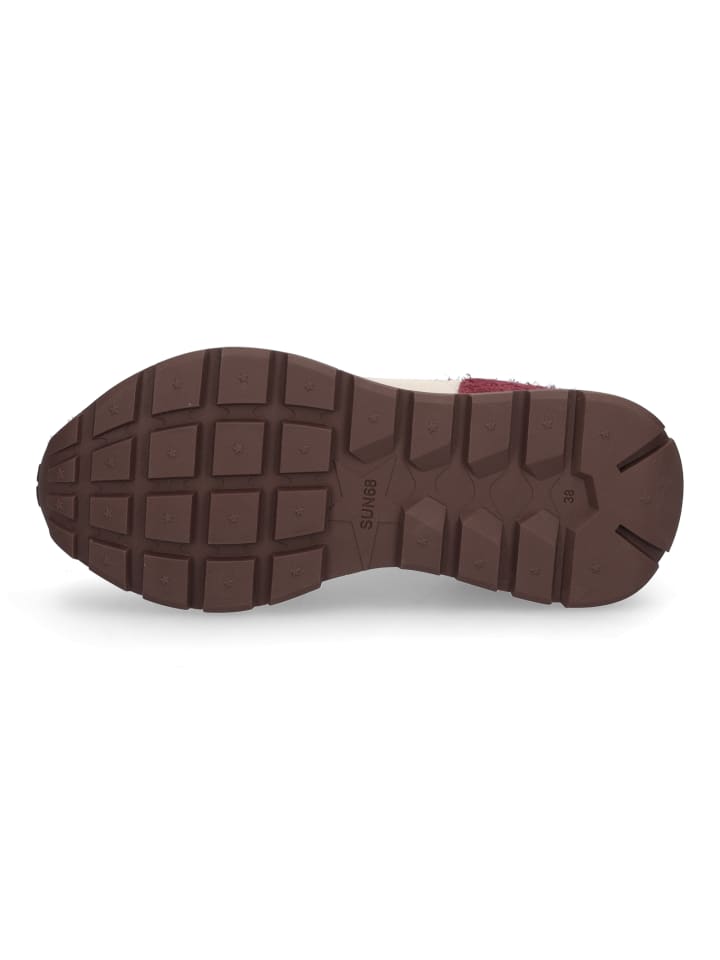 Женские кроссовки Sun68 из бежевой и красной замши и текстиля со шнуровкой, съемной текстильной стелькой и дышащей текстильной подкладкой