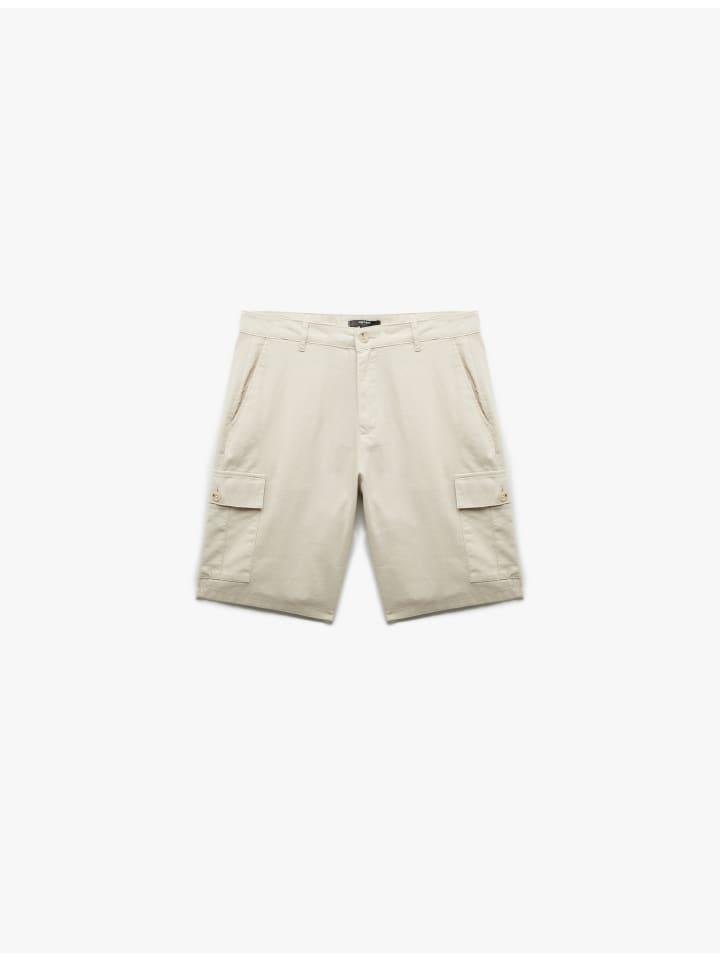 Эти стильные шорты-бермуды из смеси льна и хлопка обеспечивают максимальный комфорт благодаря классическому крою. Карго-крой с практичными карманами придаст вам динамичный летний вид. Эти шорты идеально сочетаются с простыми футболками или рубашками, добавляя одновременно непринужденный и элегантный штрих к вашему гардеробу для отдыха.