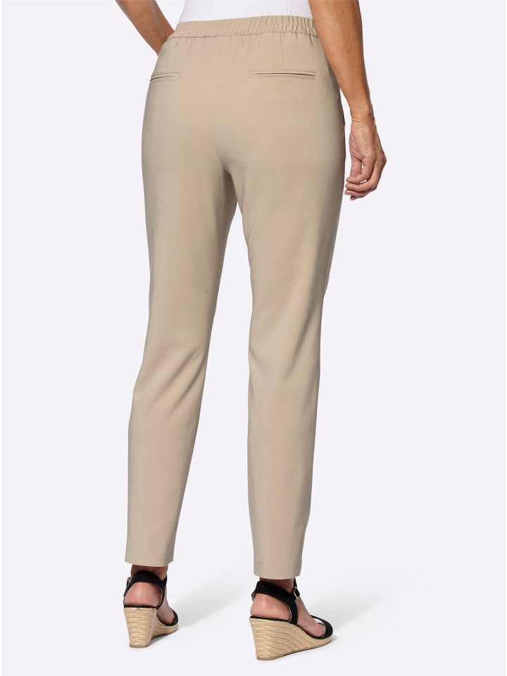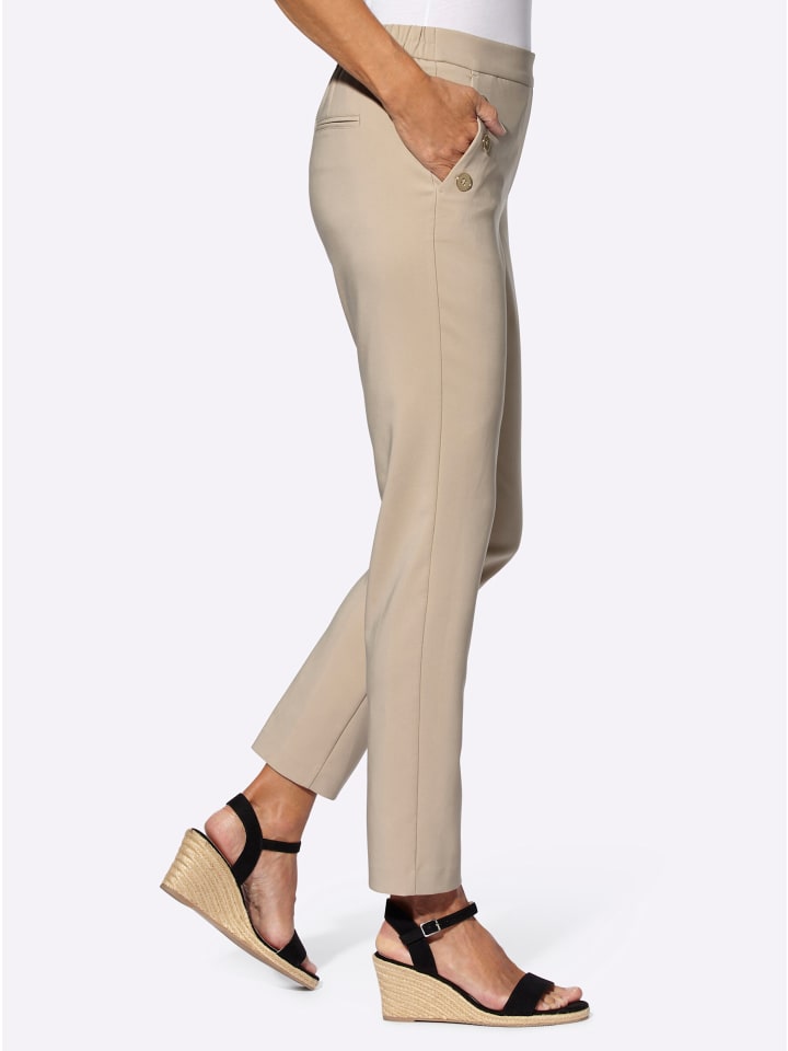 Удивительно удобные брюки, которые легко надевать, в которых приятно чувствовать себя и отлично выглядеть. Гладкий пояс спереди, имитация застежки-молнии и два боковых кармана, каждый с тремя декоративными пуговицами. Эластичный пояс сзади. Ширина брючины примерно 36 см. Изготовлены из переработанного полиэстера.