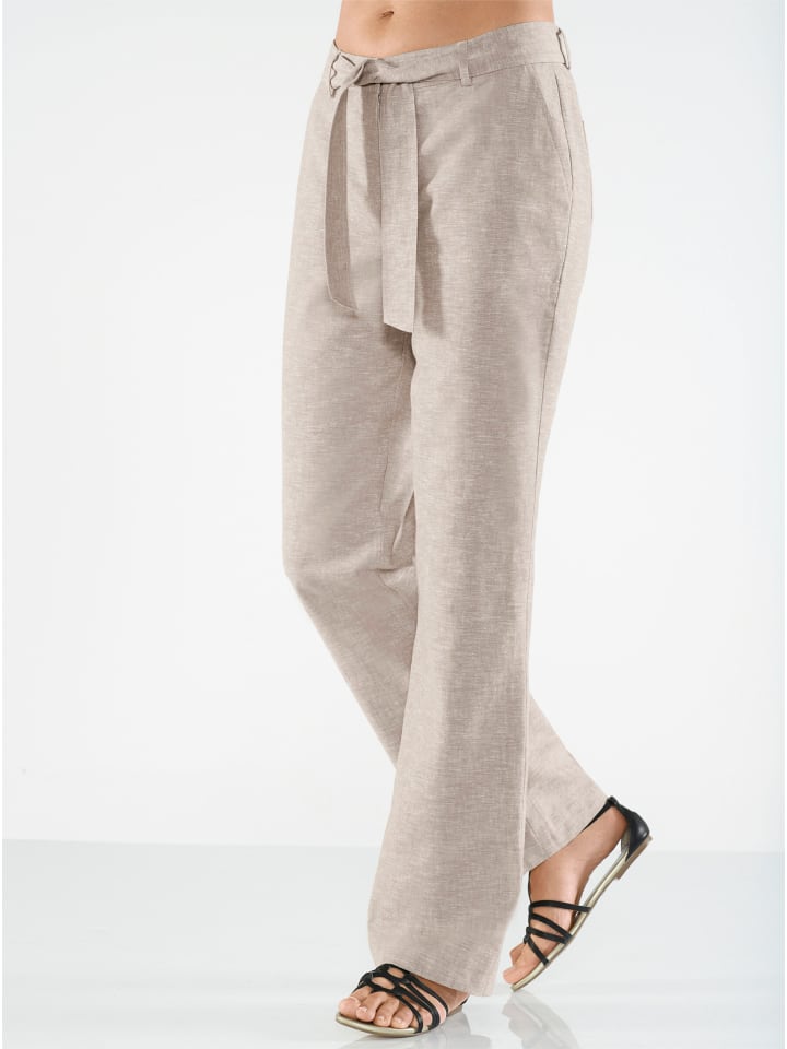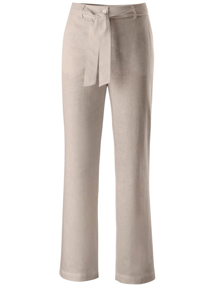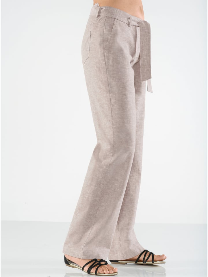 Свободные брюки широкого кроя из высококачественного смесового материала. Формованный пояс, шлевки для ремня и застежка на пуговицу и молнию. Кокетка сзади обеспечивает отличную посадку. Два кармана спереди и два сзади. Завязывающийся пояс входит в комплект! Ширина брючины: около 50 см.