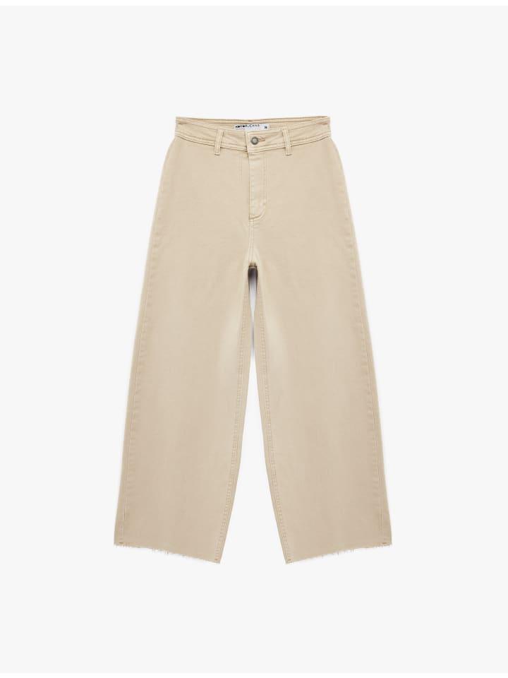 Эти современные джинсы-кюлоты отличаются широким кроем и необработанными краями. Высокая талия обеспечивает удобную посадку, а пуговицы и карманы добавляют функциональный штрих. Идеально подходят для повседневного или элегантного образа, они подойдут для различных повседневных ситуаций.