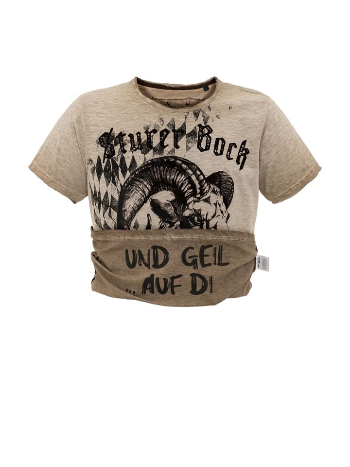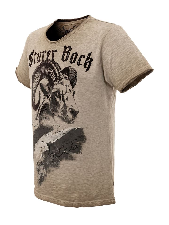 Футболка Hangowear «Godwin Austria» - бежевая с принтом. Футболка Godwin Austria от Hangowear - настоящая находка для тех, кто хочет подчеркнуть свою индивидуальность. Яркий принт «Stubborn Goat» спереди создает забавный образ с характером. Футболка из приятного мягкого хлопка бежевого цвета обеспечивает исключительный комфорт и прекрасно сочетается с различными вариантами. Круглый вырез горловины и классический крой дополняют повседневный образ.
