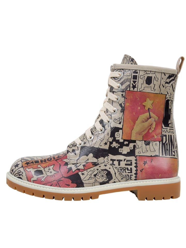 Создайте яркое заявление с ботинками DOGO «Star Girl». Дизайн включает в себя нарисованные вручную элементы комиксов, звезды и вдохновляющие послания, такие как «Действуй» или «Ура» - идеально подходит для тех, кто живет своим стилем и любит выделяться.