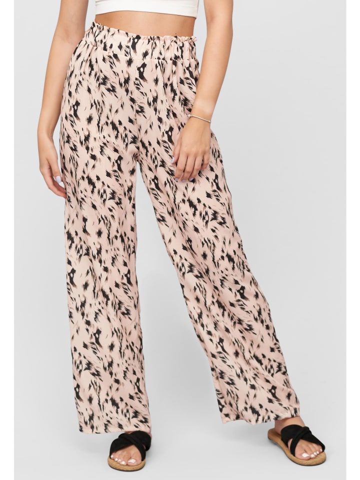 Широкие брюки идеально подходят для повседневной носки, с удобной посадкой и средней посадкой для повседневного образа; длинная брючина ниспадает широкими струящимися прядями, обеспечивая свободу движений и элегантную драпировку. Изготовленные из легкого полиэстера с добавлением эластана, который удобен и сохраняет форму, брюки мягкие на ощупь и слегка растягиваются. Конструкция имеет эластичный пояс, который удобно регулируется, и чистый, прямой подол без каких-либо заметных деталей. Изысканный анималистичный принт добавляет индивидуальности силуэту и легко сочетается с простыми топами, делая брюки универсальными. - Свободный крой и удлиненный крой обеспечивают свободную посадку и плавные движения - Средняя посадка с эластичным поясом для удобной поддержки и легкого снимания - Легкая эластичная смесь с гладкой драпировкой для комфортной носки - Анималистичный принт как эффектная деталь, универсальный для повседневного отдыха и отпуска - Практичность: простая в уходе конструкция, которая легко упаковывается и дорожная. Материал: - 95% полиэстер - 5% эластан
