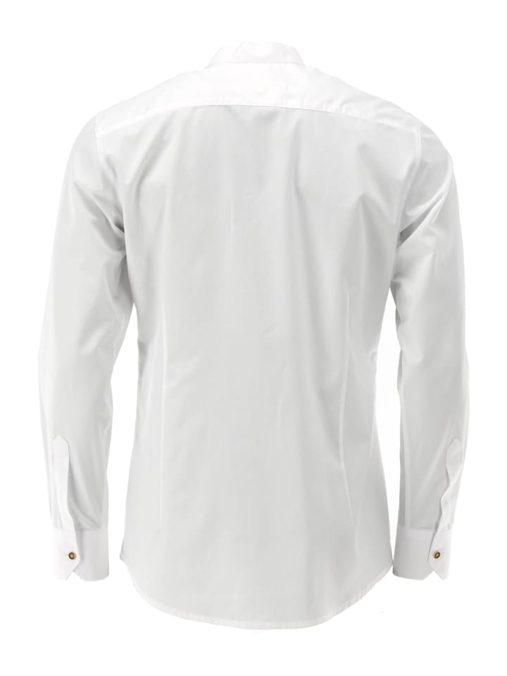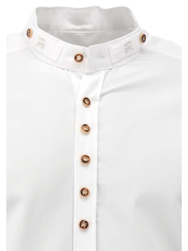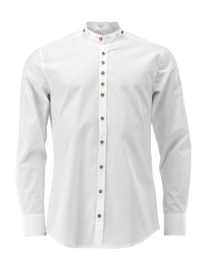 Хотите ненавязчиво выразить свою любовь к традиционной одежде? Тогда рекомендуем эту белую рубашку с воротником-стойкой от OS Trachten с вышивкой в тон. Изображение оленей на маленькой петельке воротника заметно только при ближайшем рассмотрении. Только коричневые пуговицы в форме оленьих рогов создают тонкий цветовой контраст. Изготовлена из чистого хлопка, модный облегающий крой. В наличии в текущей коллекции с размерами воротника от 35 до 57. Рубашка, которую вы будете носить часто - не только на традиционные праздники!