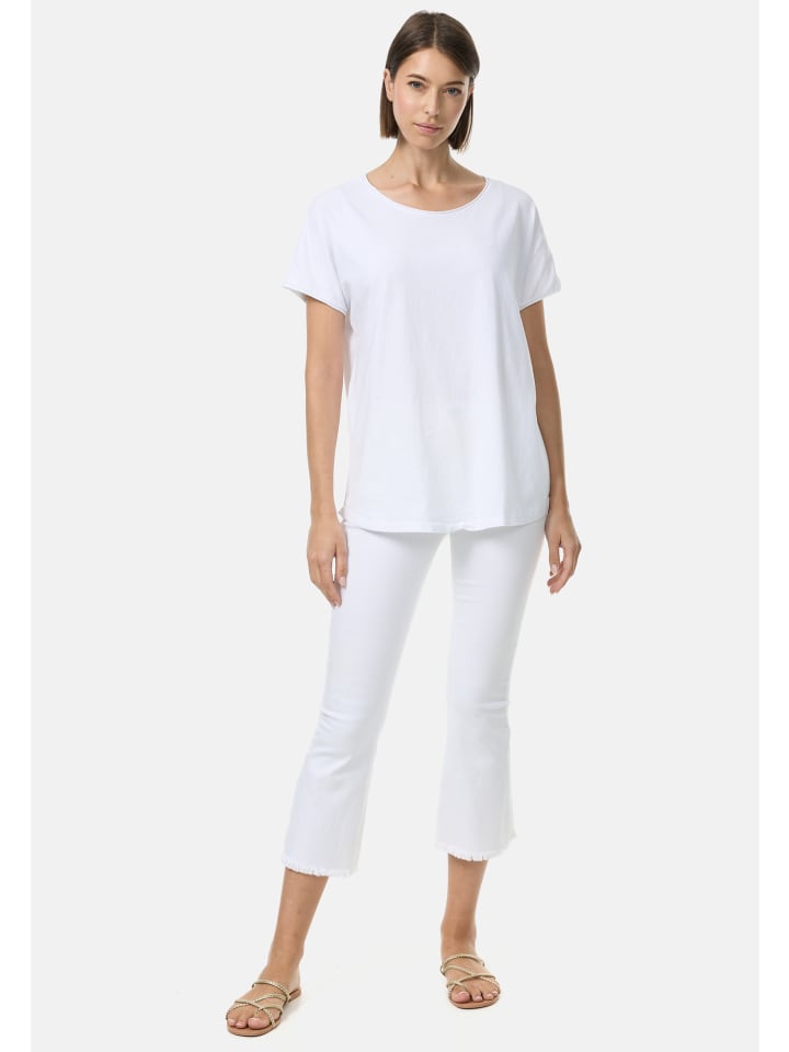 Эта женская футболка удобного прямого кроя. В сочетании с удобной длиной, доходящей примерно до бедер, это обеспечивает максимальный комфорт. Свободный крой дополняется удобным кроем, короткими рукавами и круглым вырезом. Мягкий материал, состоящий из 95% хлопка, приятен на ощупь и, благодаря 5% эластана, слегка тянется и идеально садится по фигуре.