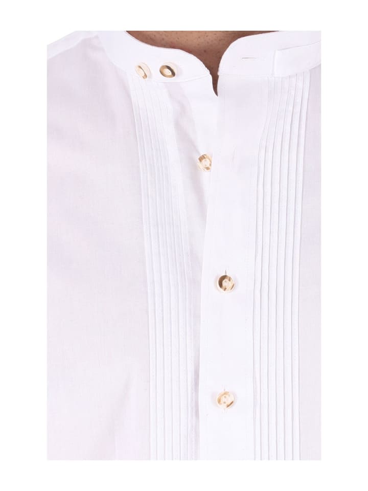 Традиционная рубашка со стильными складками и воротником Мао. Almsach Leather открывает новые горизонты, представляя эту белую традиционную рубашку: эта элегантная мужская рубашка отличается красиво зашитыми складками, называемыми защипами, по обе стороны планки, искусно создавая традиционный образ. Короткий китайский воротник-стойка в модном стиле Мао добавляет ультрасовременный штрих к рубашке с длинными рукавами. Среди других удачных деталей, придающих белой рубашке современный вид, - закругленный подол и стильные спортивные манжеты. Приятная ткань из чистого хлопка и свободный крой рубашки обеспечивают высокий уровень комфорта. Таким образом, Almsach Leather создала настоящий хит в области современной мужской моды.