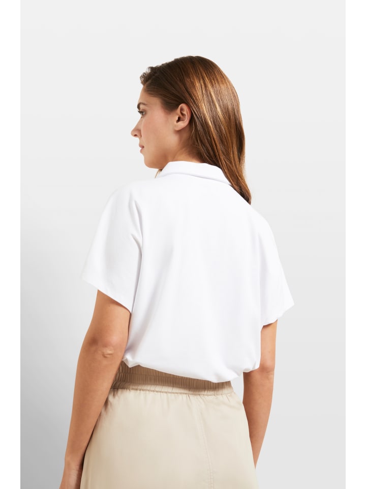 Наша рубашка-поло с короткими рукавами из эластичного хлопка - воплощение непринужденного шика. Спущенная линия плеч и короткие рукава придают этой рубашке современный вид, идеально подходящий для непринужденного образа. Боковые разрезы обеспечивают не только свободный крой, но и оптимальную свободу движений. Эта рубашка-поло подойдет для любого случая, будь то с джинсами, шортами или брюками чинос.