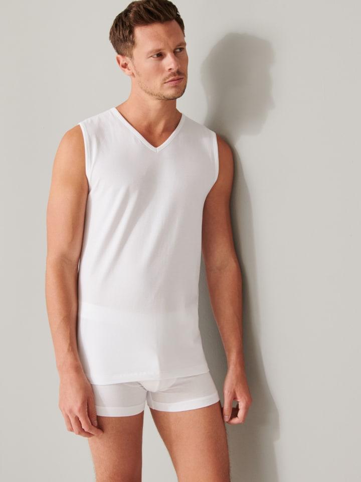 Эти мужские майки - непревзойденный дуэт в этой выгодной упаковке из четырех пар. Ультрамягкий материал обеспечивает исключительный комфорт и невероятно приятен на ощупь. Благодаря практичному глубокому V-образному вырезу майки легко надевать под рубашку. Короче говоря: практичная упаковка в традиционно высоком качестве SCHIESSER.