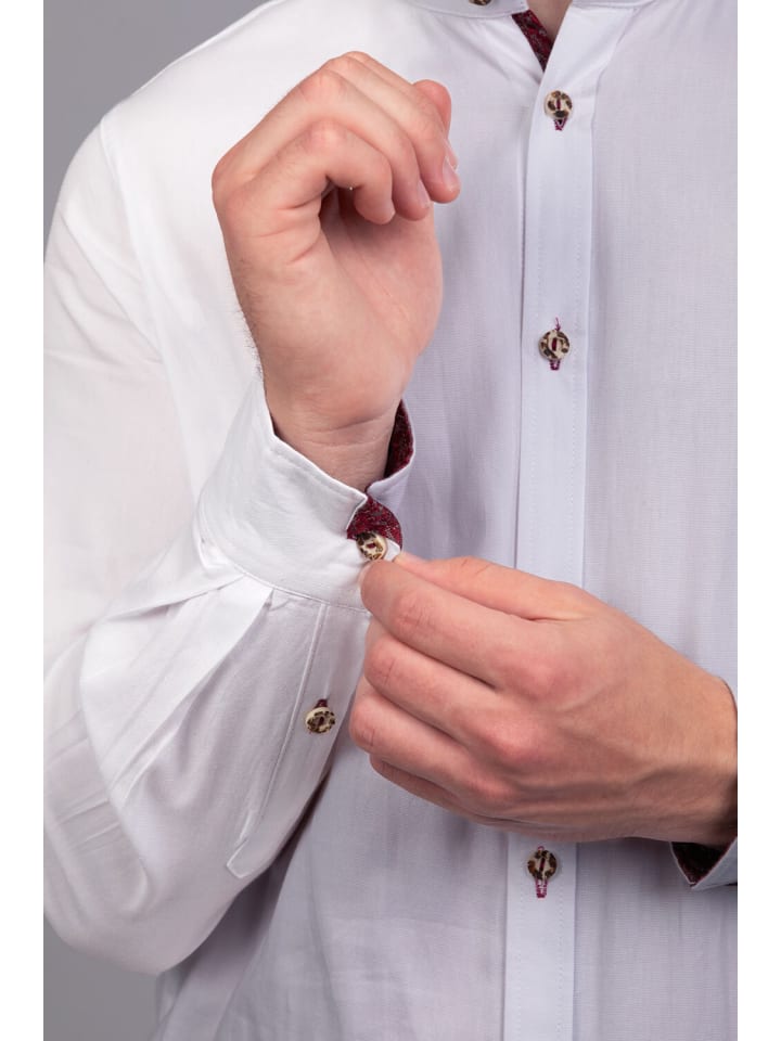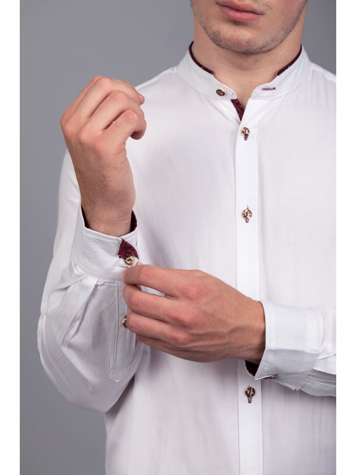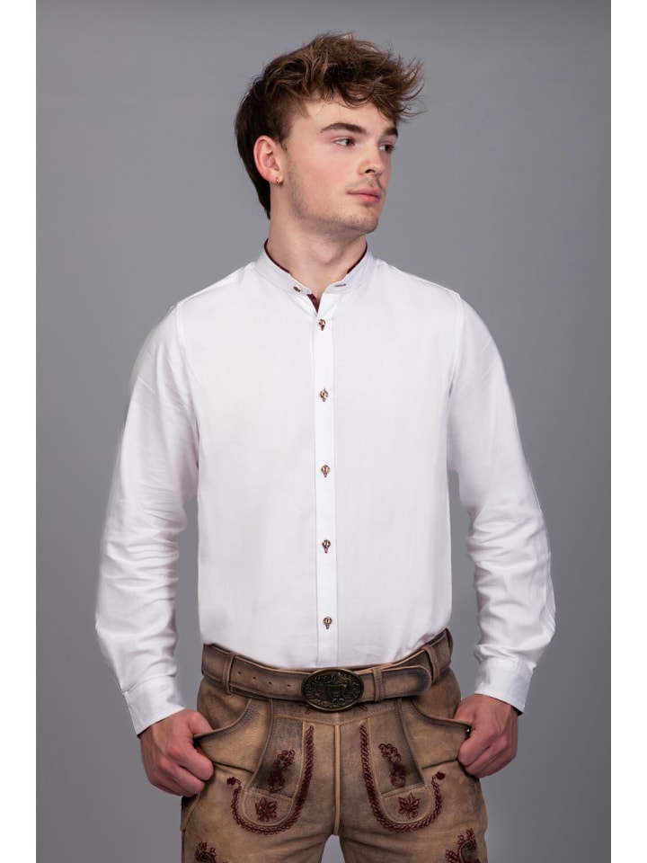 Универсальное использование: идеально подходит для праздничных случаев, таких как народные фестивали и свадьбы, или для повседневной носки. Эта рубашка прекрасно сочетается с ледерхозенами или традиционными жилетами и подчеркивает изысканный традиционный образ. Традиционная рубашка Simon красного цвета - это больше, чем просто предмет одежды; Это заявление стиля и внимания к деталям. Он сочетает в себе традиционные элементы с нотками современности, гарантируя, что каждый любитель традиционной одежды произведет положительное впечатление в любой ситуации. - Белый базовый дизайн: рубашка имеет свежий белый цвет, который излучает свежесть и элегантность и достаточно универсален, чтобы сочетаться с различными нарядами. - Воротник-стойка: современный воротник-стойка придает рубашке современный вид, который идеально подходит как для официальной, так и для повседневной обстановки. - Бордовые акценты: воротник, рукава и петли украшены элегантной бордовой тканью, которая создает красивый контраст с белым материалом и привлекает внимание. - Пуговицы с эффектом рога: пуговицы, выполненные с элегантным эффектом рога, добавляют традиционный штрих, дополняющий традиционную одежду. - Универсальное использование: идеально подходит для праздничных случаев, таких как народные фестивали и свадьбы, или для повседневной носки. Эта рубашка идеально сочетается с ледерхозе или традиционными жилетами и подчеркивает изысканный традиционный образ.