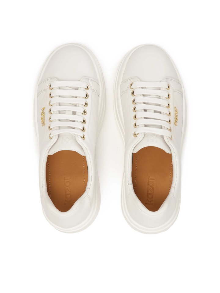 Белые кроссовки - воплощение современного минимализма и непринужденной элегантности. Изготовленные из гладкой натуральной кожи, они имеют чистый, минималистичный верх без украшений, что придает им свежий и универсальный вид. Высокая, прочная подошва добавляет модный, спортивный штрих, обеспечивая комфорт и амортизацию. Золотистые металлические детали: логотип на верхе и люверсы на шнурках - тонкий, но эффектный акцент - добавляют нотку роскоши и элегантности, создавая красивый контраст с белым цветом обуви. Эти кроссовки - идеальный выбор для тех, кто ценит простоту с ноткой изысканности и дополняет как повседневные, так и более элегантные городские образы.