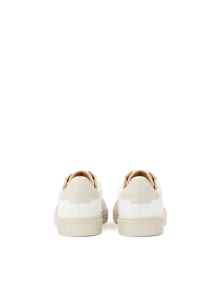 Эти черные мужские кроссовки из высококачественной натуральной кожи - современная и стильная обувь, сочетающая элегантность с повседневным комфортом. Шнуровка придает им классический спортивный вид. Верх украшен крупной тисненой монограммой KAZAR, подчеркивающей престижный характер обуви. Удобная подошва с хорошей амортизацией обеспечивает комфорт даже при длительном ношении. Эта универсальная модель подойдет как для повседневной носки, так и для более изысканного городского образа.