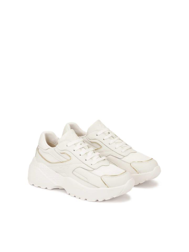 Эти белые кроссовки представляют собой уникальное сочетание элегантности и спортивного стиля. Изготовленные из смеси высококачественной натуральной кожи и дышащей ткани, они обеспечивают комфорт и долговечность. Контрастные материалы придают им современный, динамичный характер. Модель опирается на толстую, прочную подошву, которая не только обеспечивает комфорт и амортизацию, но и подчеркивает модный, отличительный вид кроссовок. Это делает обувь подходящей как для повседневной носки, так и для создания непринужденного стиля. Главным декоративным элементом кроссовок является золотая окантовка, которая тонко подчеркивает их линии и добавляет нотку роскоши. Эта деталь притягивает взгляд, создавая гармоничный баланс с нейтральным белым цветом обуви. Универсальная цветовая гамма делает их идеальным выбором для самых разных нарядов - от спортивных ансамблей до элегантных повседневных образов. Эти кроссовки станут отличным выбором для женщин, которые ценят комфорт, современный стиль и нотку элегантности в своей повседневной обуви. Подкладка из полуанилиновой овчины обеспечивает гигиенические условия и превосходный комфорт. Верх: кожа; Подкладка: другой материал; Стелька: Другой материал; Подошва: Другой материал