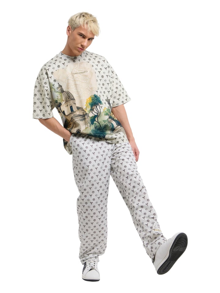 Эта рубашка несет в себе душу Италии - игривые логотипы, ностальгические надписи и отголоски углового эспрессо-бара. Свободный крой обеспечивает свободу движений, а принт напоминает о выцветших плакатах, летних ночах и элегантной потере контроля. Уличный стиль, пропитанный средиземноморской меланхолией.