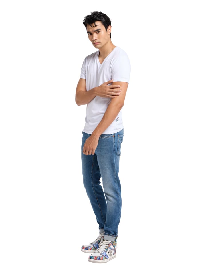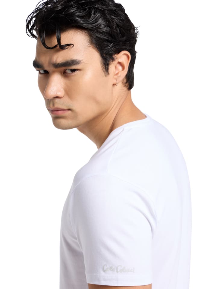 Эти однотонные футболки вдвойне привлекательнее и станут незаменимой базой для любого мужского гардероба. Эластичный трикотаж обеспечивает превосходный комфорт. Их можно носить как майку под рубашкой или свитером, а также они отлично смотрятся как классическая простая футболка.