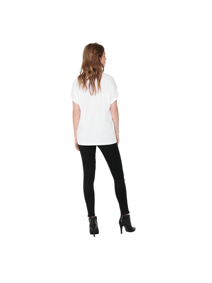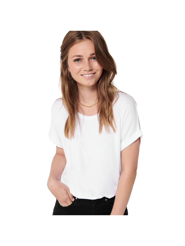 Базовая женская футболка от ONLY. Удобный верх из смесовой вискозы с эластаном. Короткие рукава с отворотами, круглый вырез горловины, классический крой.