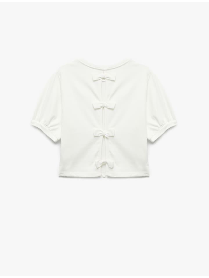 Эта футболка с круглым вырезом впечатляет своей сдержанной элегантностью и изысканным бантом на спине. Она имеет короткие рукава и выполнена из мягкой хлопковой ткани, обеспечивающей комфорт в течение всего дня. Этот дизайн идеально подходит для летних образов и легко сочетается с различными предметами одежды. Бант придает футболке игривый вид, делая ее изюминкой любого гардероба.