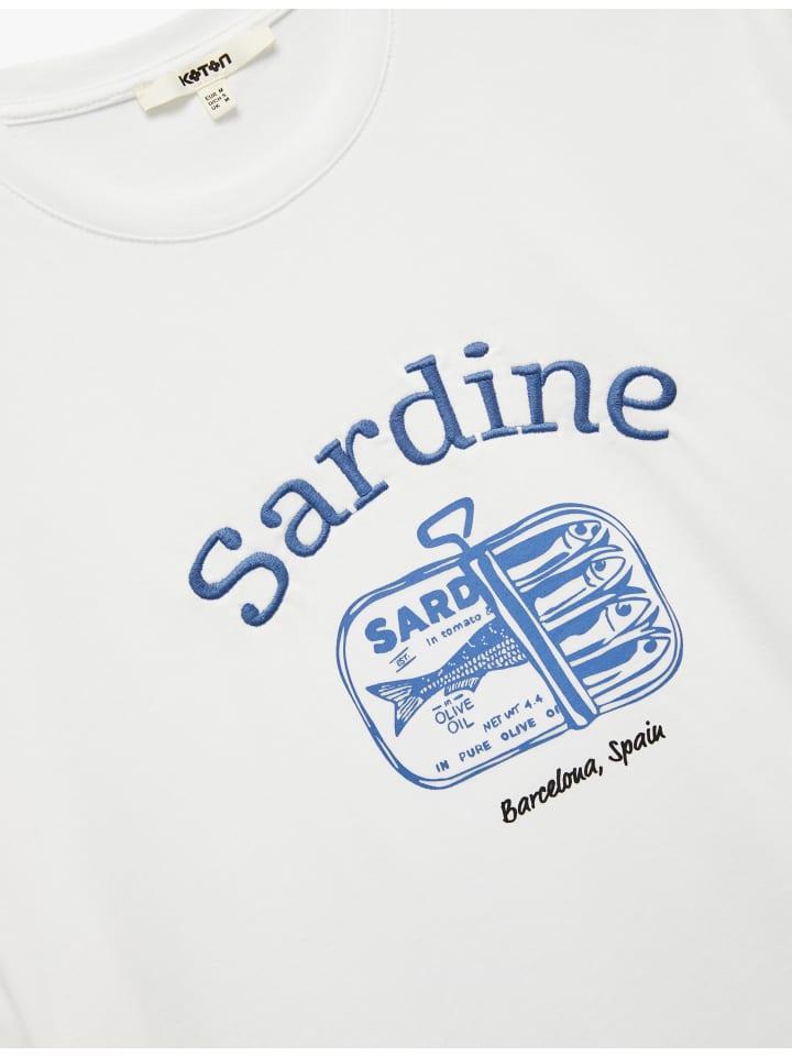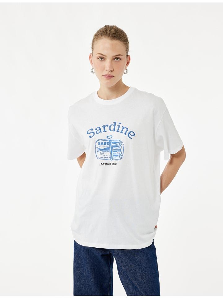 Эта свободная футболка сочетает в себе современный стиль и комфорт. Круглый вырез горловины и короткие рукава создают свежий образ, а эффектный принт с сардинами добавляет энергичности. Идеально подходит для повседневных образов, хорошо сочетается как с джинсами, так и с шортами, добавляя динамичности любому образу.