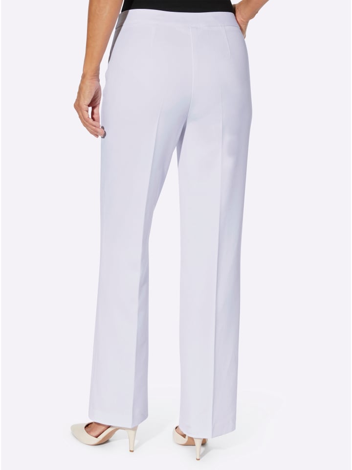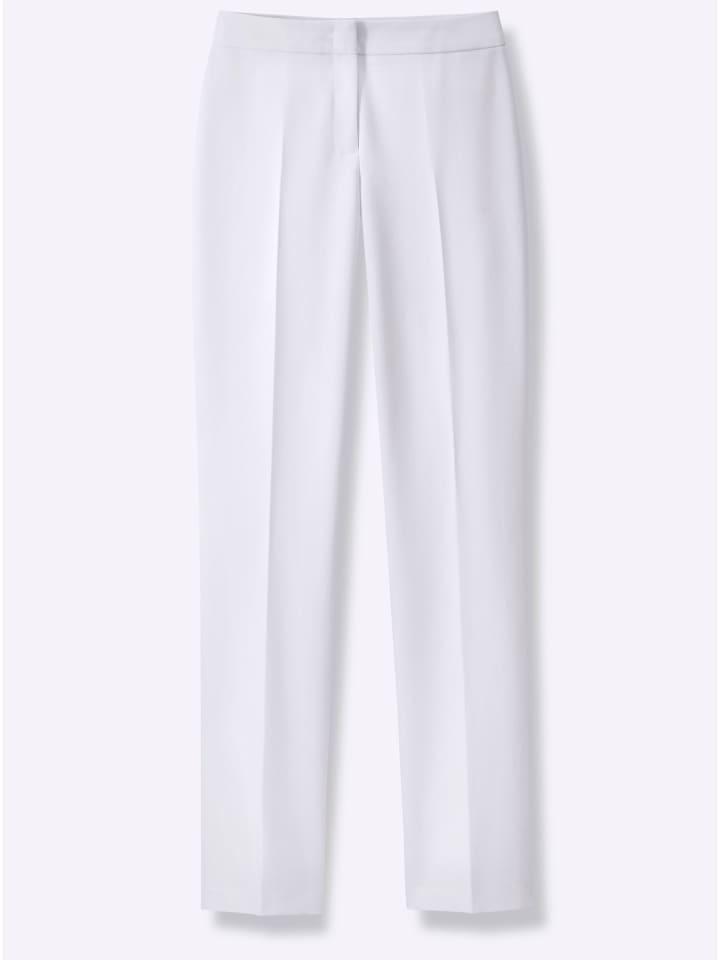 Брюки с модным широким кроем. Формованный пояс с потайной застежкой на пуговицу и крючок, а также молнией спереди. Аккуратные складки спереди и сзади завершают образ. Длина брючины примерно 52 см. Ремень в комплект не входит. Изготовлены из переработанного полиэстера.