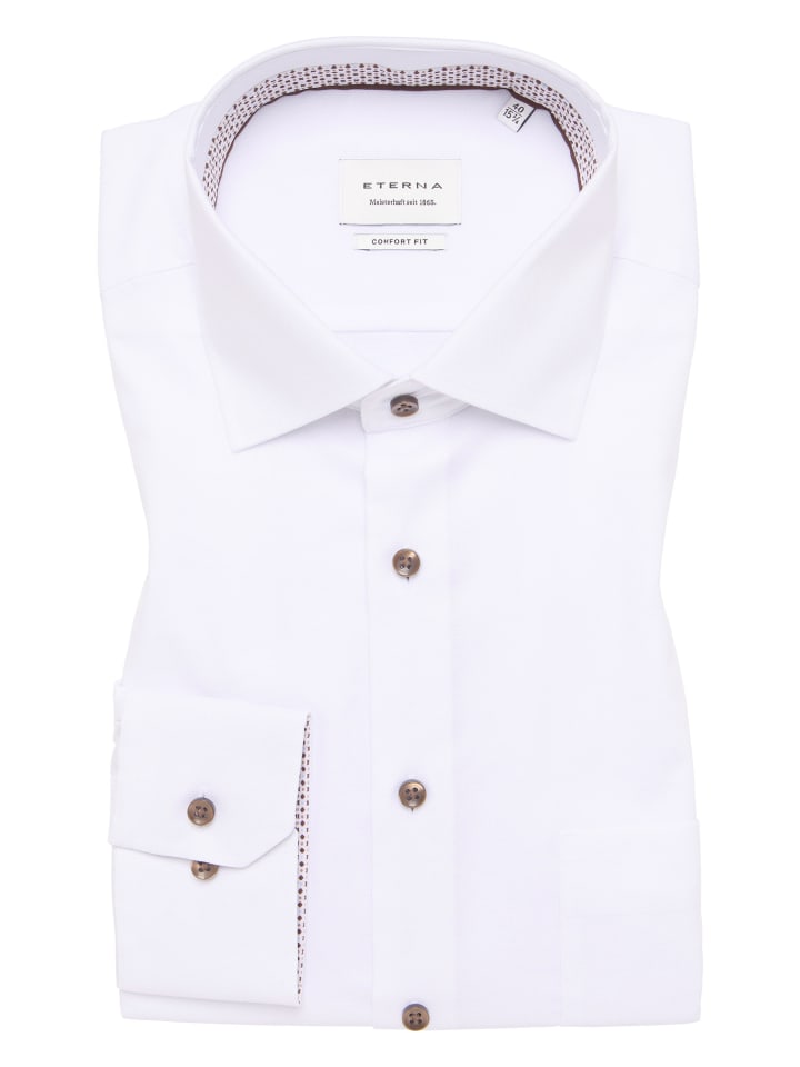 Модный парадный воротник Kent и интегрированная резинка на внутренней стороне воротника идеально дополняют образ. Низ закруглен до стандартной длины, поэтому рубашку можно носить и навыпуск. Закажите сегодня в интернет-магазине ETERNA! - Посадка по фигуре согласно производителю: Comfort Fit - Воротник-стойка - Не скользит - Манжеты-трансформеры - Деловой стиль - Материал: 100% хлопок