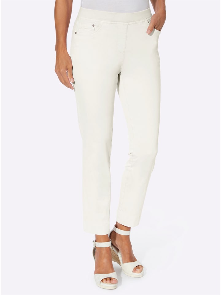 Мягкие! Мягче! Супермягкие брюки 7/8 из мягкого высококачественного материала! Мягкий трикотажный пояс с внутренней резинкой обеспечивает еще больший комфорт. Спереди - имитация молнии, сзади - приталенная кокетка. Модель с пятью карманами, украшенная заклепками на двух передних карманах (включая дополнительный карман для монет) и накладных карманах сзади. Длина брючины примерно 38 см. Ремень в комплект не входит. Поддерживает инициативу «Сделано в Африке» (Catton made in Africa).
