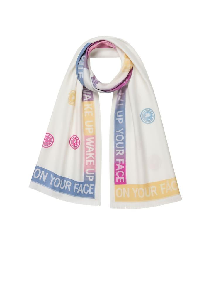 | Легкий шарф с веселым рисунком смайликов и звездочек - универсальный и легко комбинируемый.
