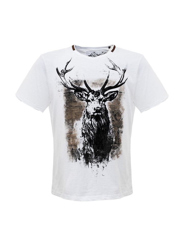 Футболка Hangowear «Gumpert» - белая с принтом оленя. Эта высококачественная футболка от Hangowear впечатляет своим ярким традиционным дизайном и экологичными материалами. Крупный принт с изображением оленя украшает переднюю часть, придавая футболке деревенский, альпийский вид. Изготовленная из 100% органического хлопка, она особенно удобна в носке, дышащая и приятная для кожи. Классический круглый вырез горловины и прямой крой делают ее универсальным дополнением - будь то с джинсами, ледерхозенами или в качестве повседневной одежды.