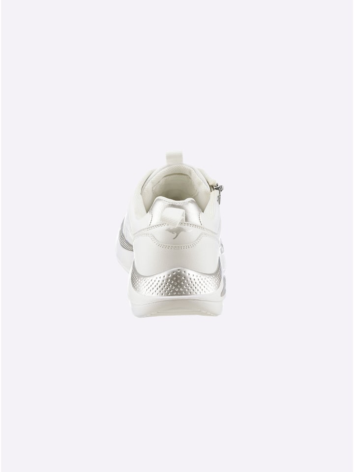 Ищете стильную, спортивную и одновременно удобную обувь? Тогда мы рекомендуем кроссовки Kangaroos! Благодаря металлическим мерцающим элементам они притягивают взгляд и обеспечивают исключительный комфорт при ходьбе. Верх выполнен из искусственной кожи, подкладка - из текстиля и синтетического материала. Боковая молния и подошва из ЭВА с каблуком около 30 мм. Ширина G.