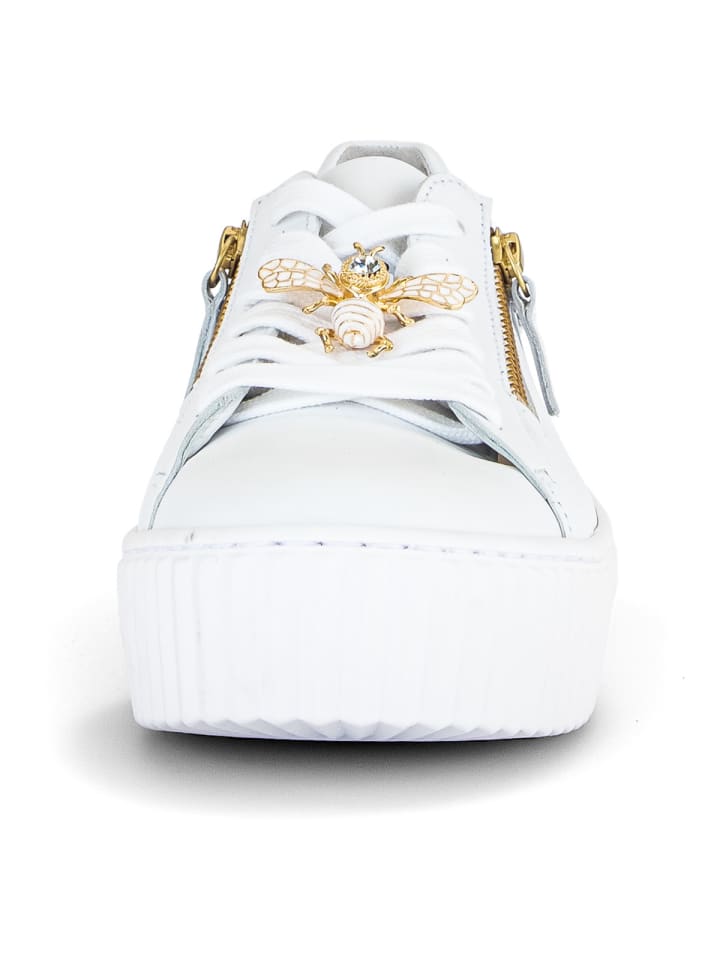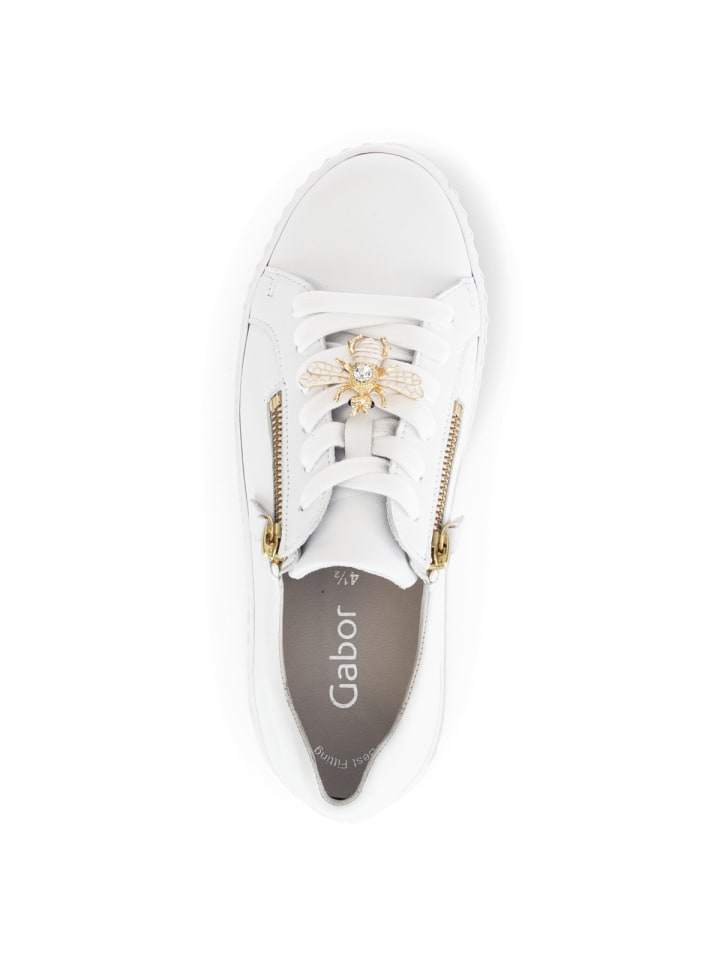 Верх из высококачественной лакированной кожи долговечен и придает обуви элегантный вид. Подкладка из кожи и текстиля и мягкая съемная стелька обеспечивают комфортный микроклимат. Система шнуровки гарантирует идеальную посадку и оптимальную поддержку. Боковые молнии позволяют легко надевать и снимать обувь. Многослойная подошва обеспечивает оптимальную амортизацию пятки. Стильные кроссовки, которые благодаря молниям и украшению в виде пчелы также привлекают внимание.