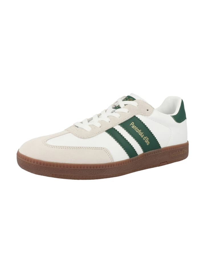 Низкие кеды BALLARE от PANTOFOLA D'ORO представляют собой гармоничное сочетание спортивной элегантности и итальянского мастерства. Они могут похвастаться стильным дизайном, подчеркнутым зубчатыми декоративными полосками с золотистым логотипом и изящно размещенной этикеткой сбоку. Изысканная поверхность подчеркивает высокое качество и, в сочетании с мягким бортиком, обеспечивает удобную посадку. Классическая система шнуровки позволяет индивидуально регулировать посадку, а усиленные области на носке и пятке обеспечивают дополнительную устойчивость. Съемная стелька повышает комфорт и поддерживает оптимальное контурирование стопы, а гибкая нескользящая подошва способствует естественным движениям и обеспечивает надежное сцепление с различными поверхностями. Эти универсальные мужские кроссовки идеально подойдут для мужчин, которые ценят качество, комфорт и вневременную эстетику. - Шнуровка - Кожа - Съемная стелька - Противоскользящая подошва - Информация на этикетке - Стелька: другой материал - Подкладка: другой материал - Подошва: другой материал - Верх: кожа
