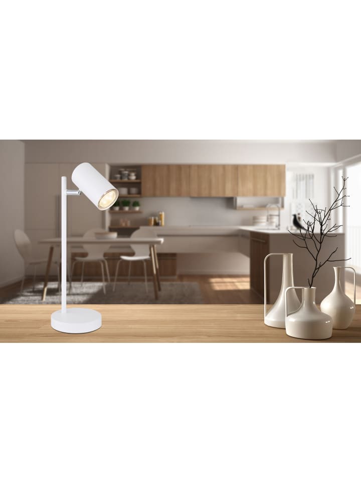 Настольная лампа, белый металл, матовая отделка, диаметр: 120 мм, высота: 350 мм, длина кабеля: 1500 мм, без 1 светодиодной лампы GU10 5 Вт, 230 В