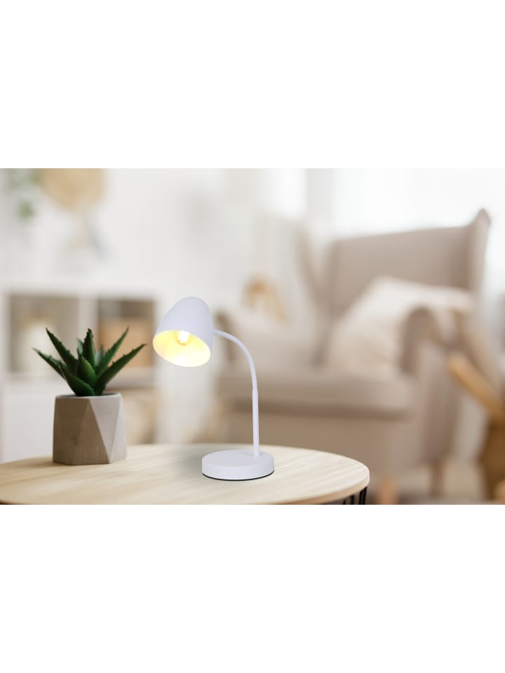 Настольная лампа, металлическая, белая, с клавишным выключателем на кабеле, гибкая, ШxВ: 150x400 мм, длина кабеля: 1500 мм, без 1 цоколя E14 25 Вт 230 В
