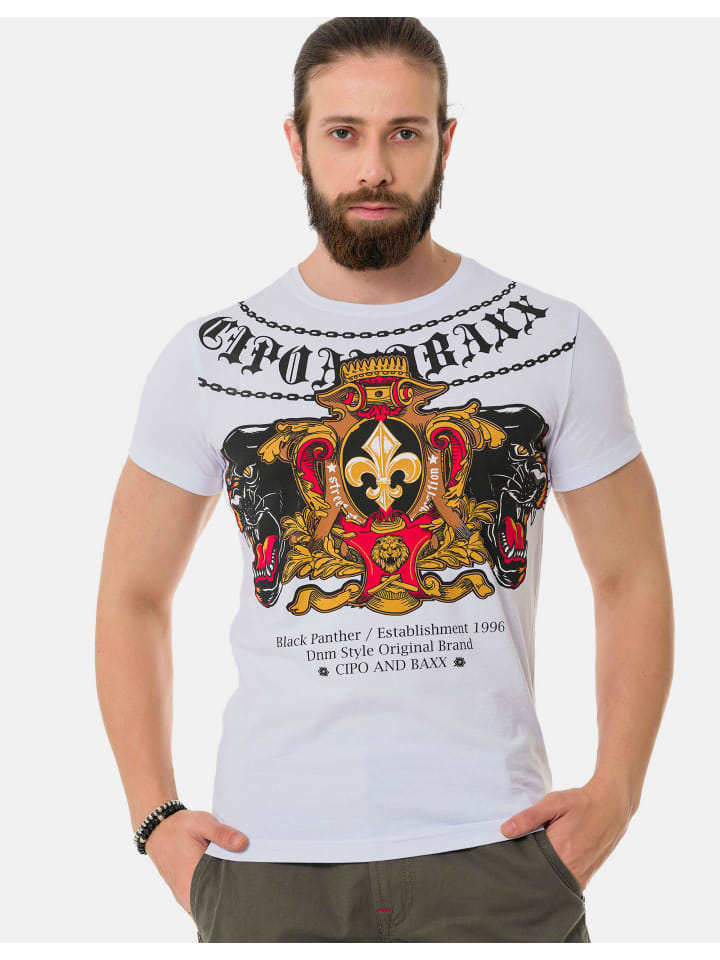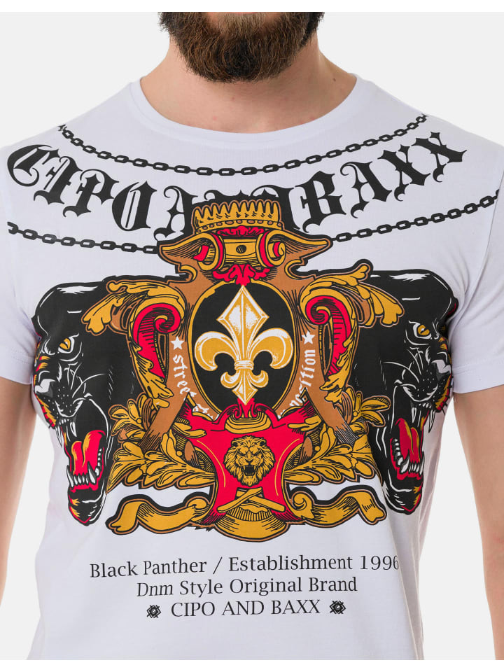 Смелее не бывает. Эта футболка с принтом пантеры от Cipo & Baxx - мечта для тех, кто любит выглядеть экстравагантно и стильно. Она имеет классический круглый вырез горловины и обеспечивает максимальный комфорт благодаря смеси хлопка и эластана.