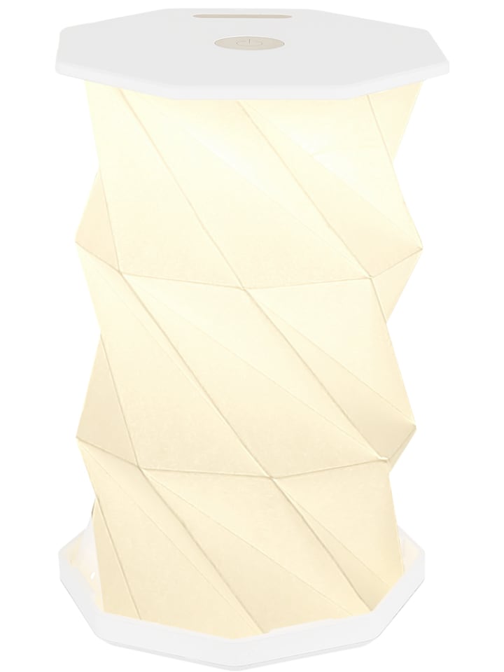 Настольная лампа, матовый белый пластик, белая бумага, белый кабель из ПВХ, сенсорное включение/выключение, плавный сенсорный диммер, блокировка цвета, адаптер не входит в комплект, USB-кабель входит в комплект, USB-A 2.0 - USB-C, в комплекте батарея 803450 800 мАч 3,7 В, выдвижная, ø: 130 мм, H: 210 мм, длина кабеля 800 мм, высота в сложенном виде: 1,8 см, в комплекте светодиод 1 Вт 230 В, источник 168 лм, световой поток 81 лм, цветовая температура 3500/4800/2600 К